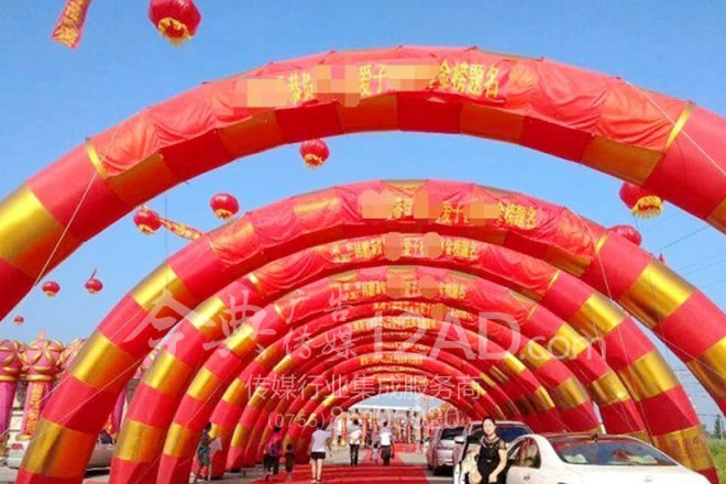 这不,深圳广告网小编听东北辽宁一个活动公司同行说,他最近接了一个大活,辽宁辽阳搞了一百多个拱门,放了几百个氢气球,挂了五百多条条幅,地毯足足铺了五千多个平方。深圳广告网小编感觉不可思议,因为每年的七八月都是广告活动公司的淡季。深圳广告网小编忙问他接的是啥活动,原来是辽宁辽阳灯塔市现最牛升学宴。听说考上了一个一本。我的乖乖,一个一本,就这么隆重的烧几十万活动布置费用,那些重本的不是要大宴全国了。现场亲朋好友所送的庆祝条幅长度超过千米,升学宴门口张灯结彩,挂满庆祝的红色氢气球。